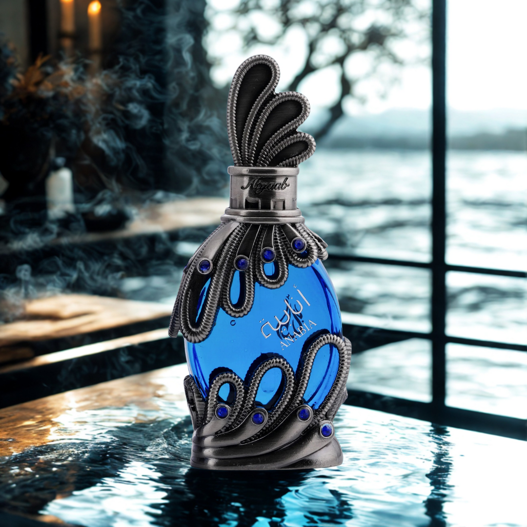Anabia Blue 20ml byr på en duftopplevelse som kombinerer klassisk eleganse med moderne dybde. Den åpner friskt og energisk med bergamot og te, før den glir over i et hjerte av lavendel og eksotisk safran, en uventet, men harmonisk kombinasjon. Basen setter et varig inntrykk med varme toner av lær, sedertre og en myk sødme fra honning.