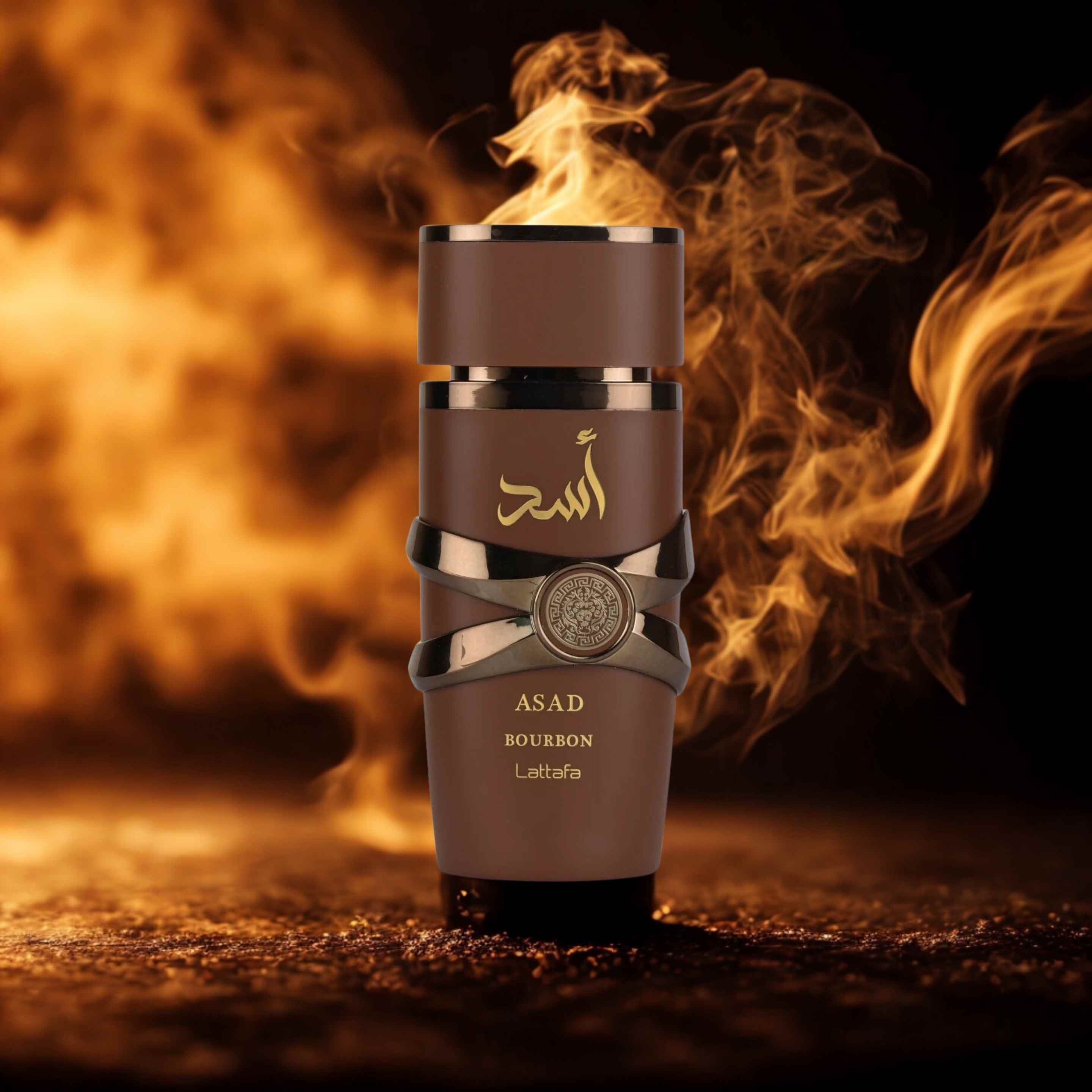 LATTAFA ASAD BOURBON Eau de Parfum spray er en unisex duft som kombinerer eleganse med sofistikasjon. Den åpner med livlige toppnoter av pink pepper, beroligende lavendel og saftig mirabelle plomme, som setter en innbydende og dynamisk tone. Hjertet avslører en varm, intrigerende blanding av muskat, davana og rik kakao, som tilfører dybde og tiltrekning. Basenotene av vetiver, bourbon vanilje og amber gir en luksuriøs og langvarig finish. Denne allsidige duften er perfekt for de som søker en balanse mellom boldhet og raffinement, og er ideell for enhver anledning.