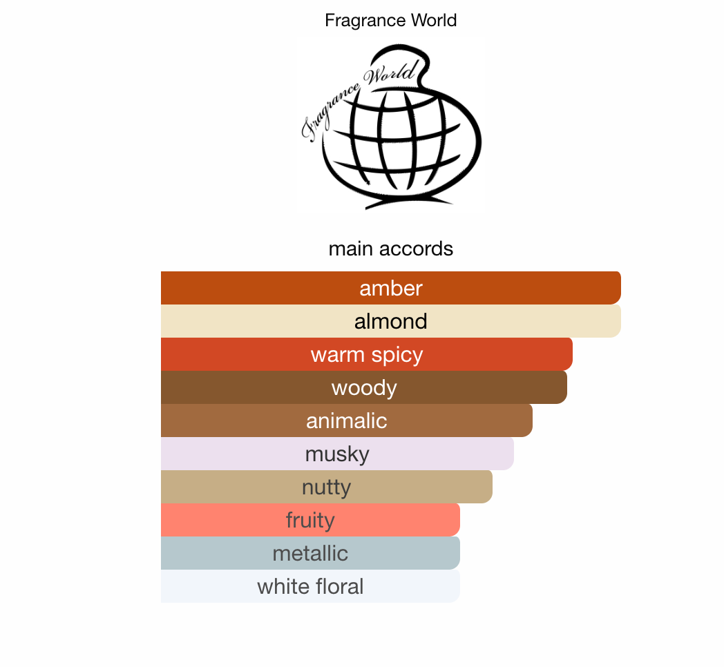 Duften åpner med en dristig, men sofistikert kombinasjon av bitter mandel og safran. I hjertet finner du egyptisk jasmin og sedertre, som tilfører dybde, varme og et raffinert uttrykk. Basen avrundes med sensuell ambergris, treaktige noter og musk, som skaper et langvarig og uforglemmelig duftspor.