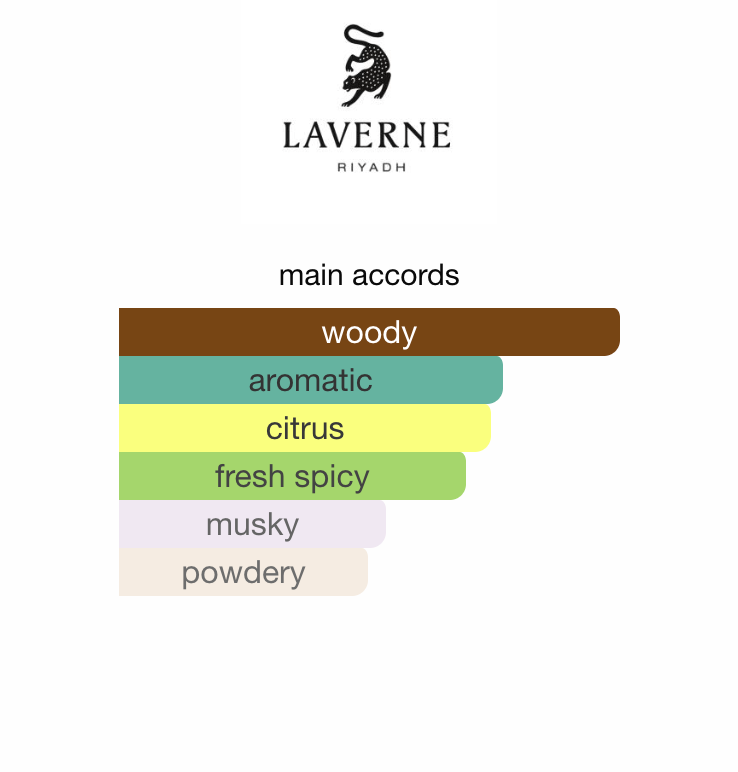 Duften åpner friskt og energisk med italiensk bergamott, einerbær og rosa pepper som gir et livlig og selvsikkert førsteinntrykk. I hjertet møter salvie, sedertre og patchouli hverandre og tilfører dybde, struktur og eleganse. Basen avrundes med musk, vetiver og guaiac-tre som gir en varm, treaktig og varig avslutning.