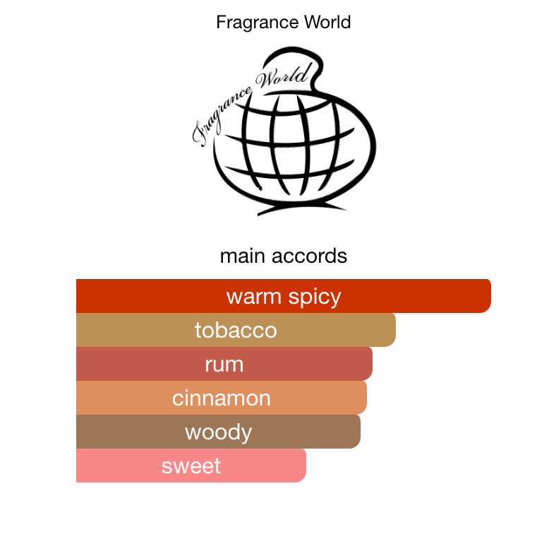 Duften åpner med en varm og kremet vanilje, før den glir over i et hjerte preget av rom, som tilfører dybde og sødme med en elegant krydret undertone. Basen avsluttes med en fyldig og maskulin miks av kanel og tobakk, som gir en intens, forførende og langvarig avslutning.