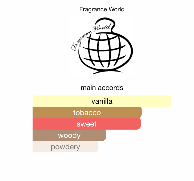 Duften åpner krydret og kraftfullt med tobakkblader og krydder. I hjertet finner du kremet vanilje, kakao, tonkabønne og tobakksblomst som gir dybde og sødme. Basen avrundes med tørket frukt og varme, treaktige toner for en elegant og varig avslutning.