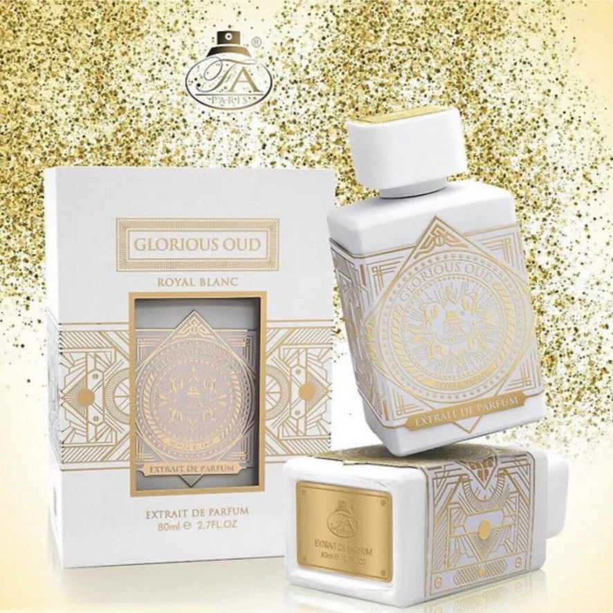 Glorious Oud Royal Blanc fra Fragrance World kombinerer orientalsk varme med moderne raffinement. En luksuriøs unisex-duft som passer perfekt for deg som ønsker å uttrykke stil og personlighet med selvtillit.