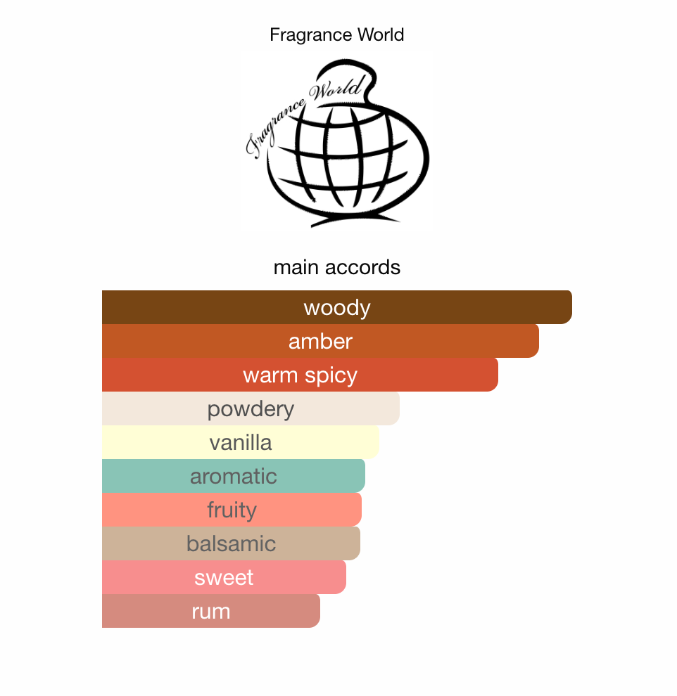 Duften åpner med en livlig og fristende blanding av fersken, blodappelsin, kardemomme og heliotrope. I hjertet møter vi en intens og sensuell kombinasjon av rom, cognac, davana og sjasmin. Basen gir dybde og langvarighet med indonesisk patchouli, vanilje, tonkabønner, sandeltre, benzoin, cashmeran, styrax, labdanum og vetiver.