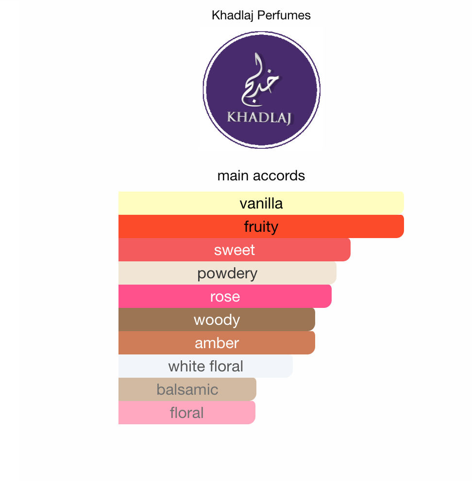 Duften åpner friskt og søtt med saftige jordbær og bjørnebær. I hjertet finner du elegante blomster med jasmin og rose som tilfører et floralt preg. Basen avrundes med varm vanilje, amber og sandeltre for en kremet, myk og langvarig avslutning.