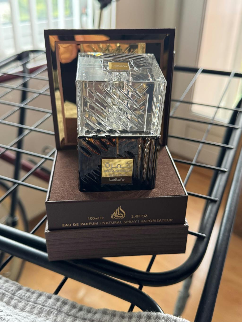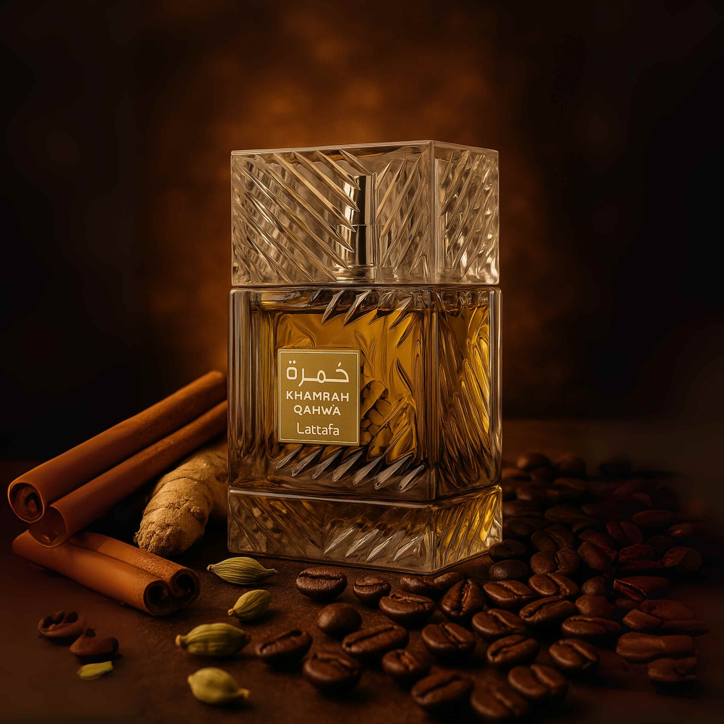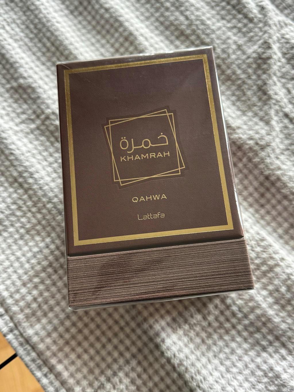 Khamrah Qahwa fra Lattafa Perfumes er en unisex-duft som forfører med en varm og krydret aura. Lansert i 2023, åpner denne parfymen med en krydret blanding av ingefær, kanel og kardemomme. Hjertet utfolder seg med sødmen fra praline og kandiserte frukter, balansert av elegante hvite blomster. Basen gir en dyp og berusende avslutning med noter av fyldig arabica-kaffe, tonkabønner, vanilje, benzoin og myk musk. Perfekt for de som ønsker en duft som skiller seg ut med en kombinasjon av søte og varme toner.