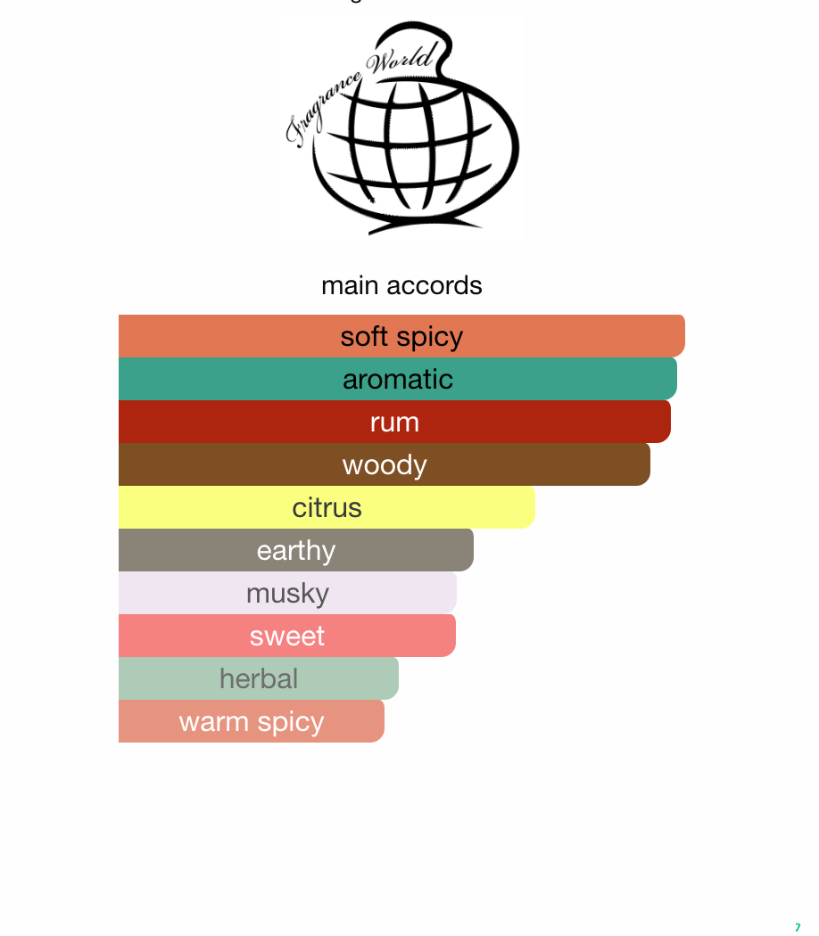Duften åpner med et friskt og krydret samspill av rosa pepper, neroli og sitron, som gir en umiddelbar følelse av lys og vitalitet. I hjertet utfolder det seg en intens og omsluttende blanding av rom, vetiver og salvie, som tilfører varme, røykfylt eleganse og moden maskulinitet.