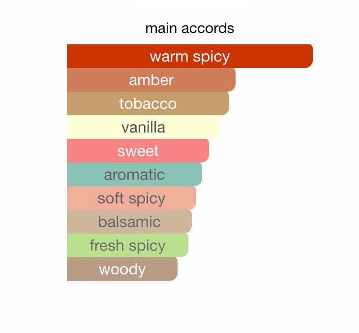 I hjertet finner vi dyp tobakksaroma som smelter sammen med den søtlige varmen fra kanelblad, kastanje og et hint av chili, en balansert kombinasjon av styrke og sensualitet.