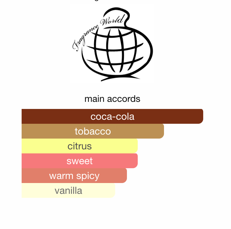 En unik og leken duft som kombinerer frisk cola med varm tobakk og søte resiner. Tabac N'Coke er for deg som liker å skille deg ut med noe annerledes, men samtidig sofistikert. Duften åpner friskt og boblende, før den utvikler seg til en varm og krydret kjerne, og avsluttes med en søt og dyp base. Passer både menn og kvinner som ønsker en spennende signaturduft med god projeksjon og lang varighet.
