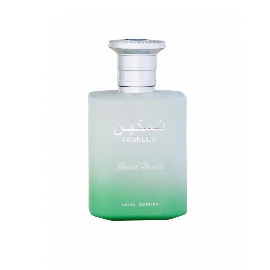 Taskeen Lactea Divina er en duft som kombinerer melkaktig eleganse med florale nyanser. Den åpner med den myke rikheten av kakao og en subtil røkelse, som gir en mystisk og innbydende start. Hjertenotene, bestående av lush jasmin og kremet tuberose, tilfører en blomstrende fylde som lyser opp duften. Når den roer seg, er det de varme notene av melk, vanilje og tonka-bønner som skaper en omsluttende følelse av myk og luksuriøs indre ro.