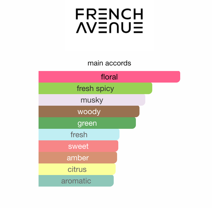 Duften åpner friskt og sprudlende med bergamott, firkløver og ingefær. I hjertet finner du myk cashmere wood, fresia og amyris-tre som gir varme og dybde. Basen avrundes med tørr amber, vegetal amber og pudret musk som skaper en myk, behagelig og varig avslutning.