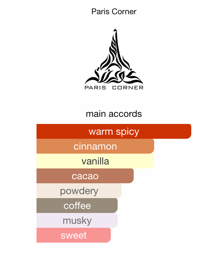 Den åpner med intens kaffe og et dryss av varm kanel, før hjertet avslører lag av kremet vanilje og rik kakao. Basen avrundes med myk musk, som gir en fløyelsmyk og behagelig avslutning. Resultatet er en søt, innbydende og nostalgisk duftopplevelse.